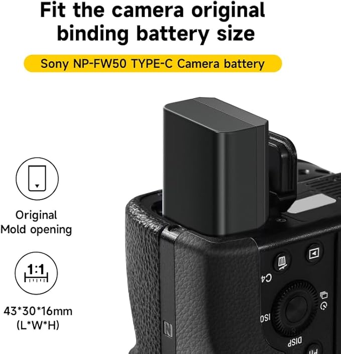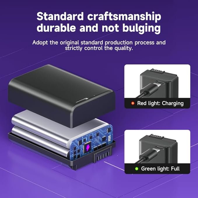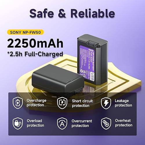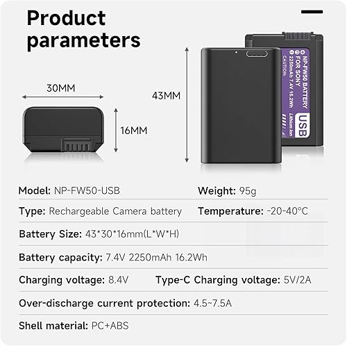 2 pz NP-FW50 batteria sostitutiva 2250mAh con ricarica USB Type-C, compatibile con Sony ZV-E10, Alpha a5100, a6000, a6300, a6400, a6500, Alpha a7, a7 II, a7R, a7R II, a7S, a7S II, RX10