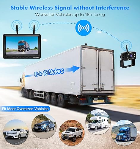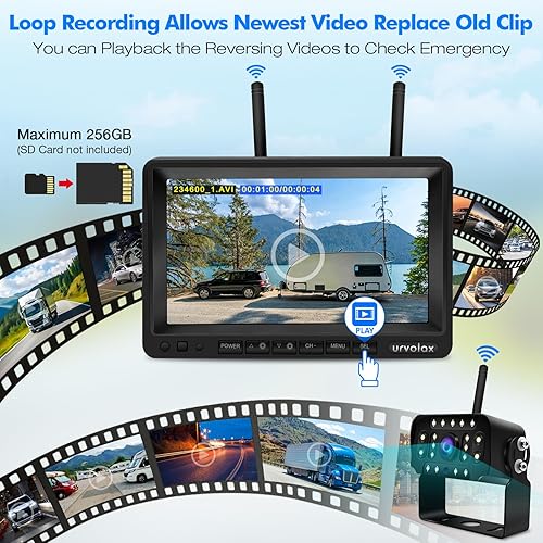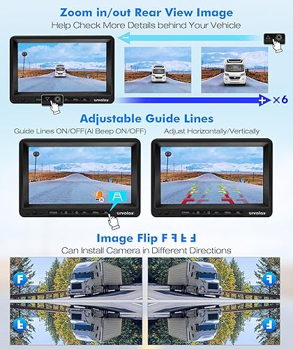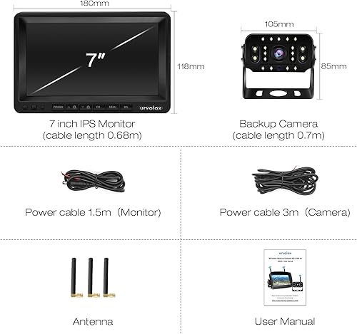 URVOLAX Retrocamera Auto Wireless con AI, Monitor 7 Pollici Telecamera Posteriore per Camper, 1080P Telecamera Impermeabile per Visione Notturna, Allarme acustico, Registrazione Video, Zoom Immagine