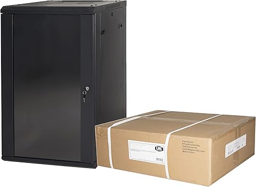 LINK armadio rack 19' LK1918UNF da muro con porta vetro temperato nero disassemblato struttura in metallo capacità 40 kg dimensioni 60x45x90,5 cm profondità 450 mm unità 18 pezzi 1