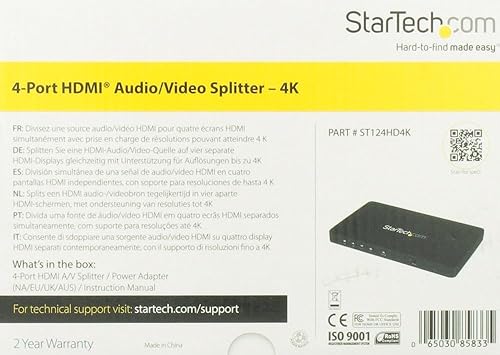StarTech.com Sdoppiatore Splitter Video HDMI 4k @ 30hz 1 ingresso 4 uscite 1x4 porte di uscita con custodia in alluminio