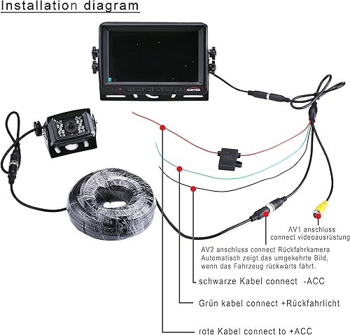 Telecamera per la retromarcia 18 IR a LED, impermeabile + Monitor 7” TFT LCD (Due Supporti)