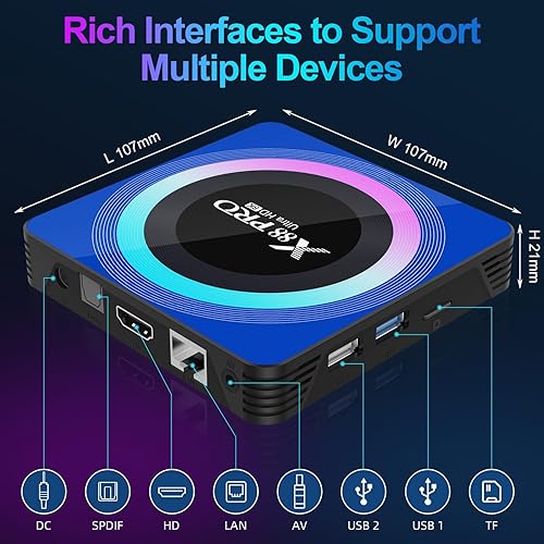 Android 13.0 TV Box, Android Box 4GB RAM 32GB ROM RK3528 Quad-Core 64bit Cortex-A53 support 2.4/5.0GHz Wi-Fi BT5.0 10/100M Ethernet HDMI 2.0 con Mini Tastiera Wireless