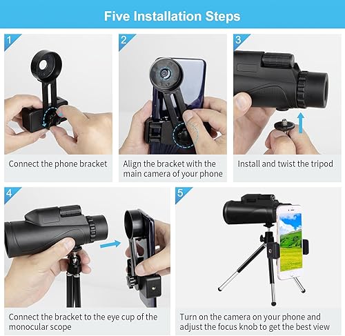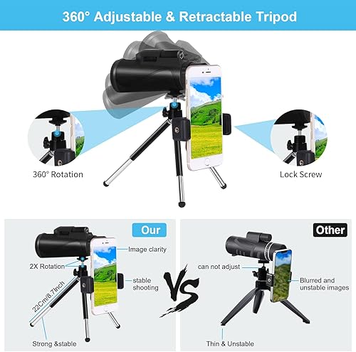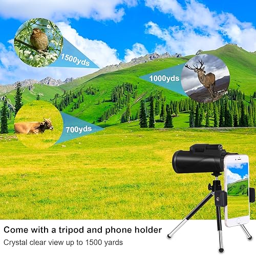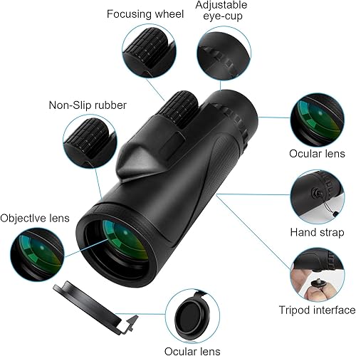 GOHHME 80X100 Monocolo Cannocchiale per Adulti con Supporto Smartphone, Treppiede Aggiornato, Prisma BAK4, Impermeabile, Monocolo Portatile per Birdwatching, Caccia, Concerti e Partite di Calcio