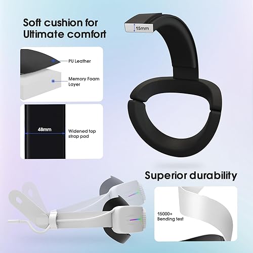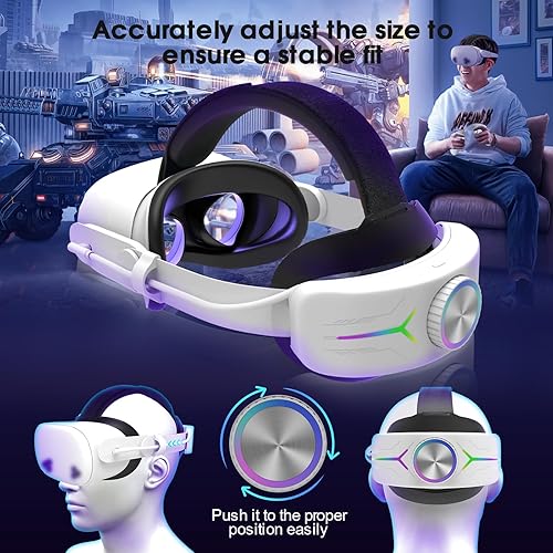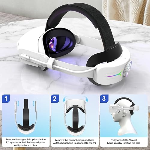 Eyglo RGB Cinturino Compatibile con Quest 3S, Sostituzione Cinturino Elite Quest 3S con Batteria 12000mAh, Miglioramento del Comfort e del Supporto VR, Accessori per Quest 3S, Tempo di Gioco