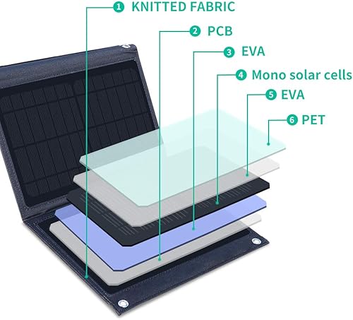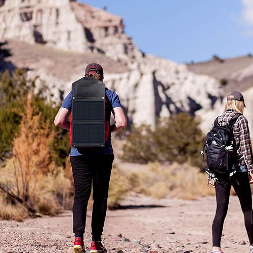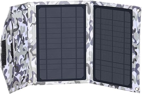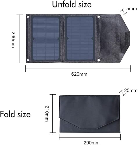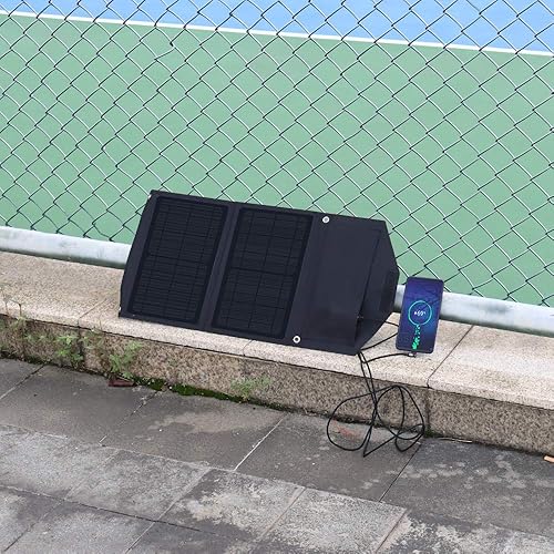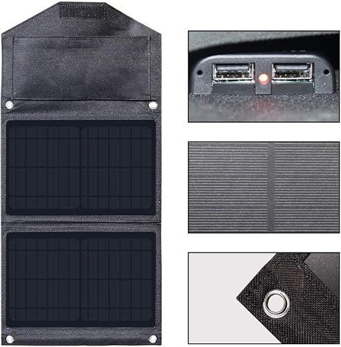 XINPUGUANG Caricatore Solare 14W Pannello Solare Pieghevole da Esterno Portatile con Doppia USB Uscita 5V 3A per Telefono, Tablet, Fotocamera, Ventilatore, Campeggio, Viaggio (Nero)