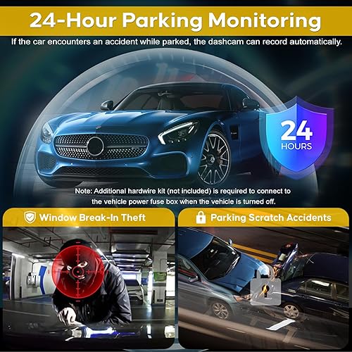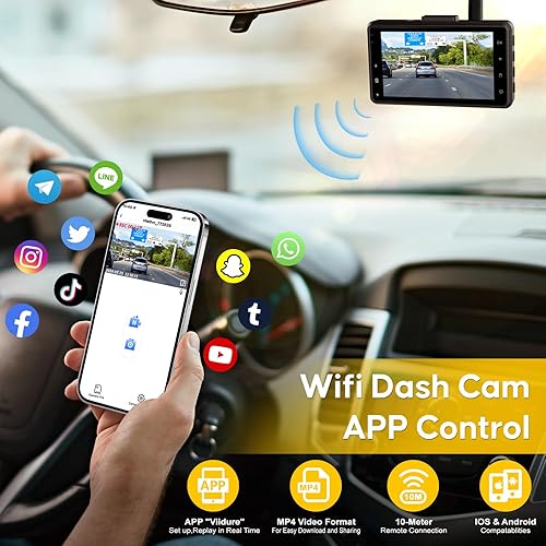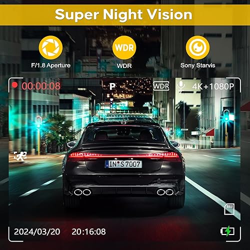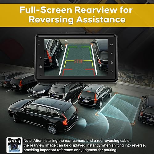 abask Dash Cam Auto, 4K Wifi Doppia Telecamera Auto con Scheda SD 64G, 320 Gradi, Schermo Integrato 3'', Retromarcia Assistita,Visione Notturna, Monitor di Parcheggio, G-Sensor, Registrazione in Loop