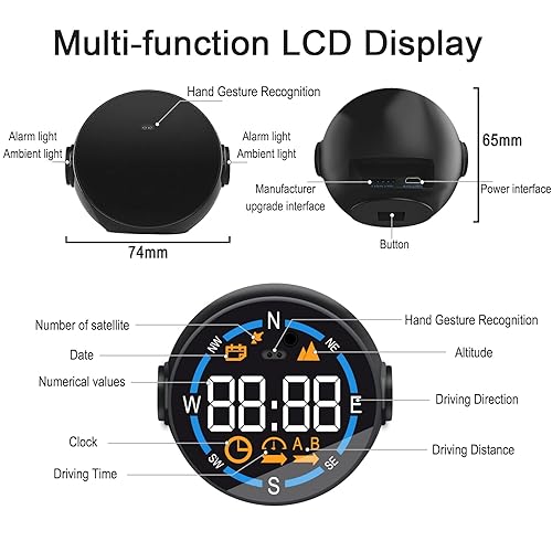 KAOLALI Head Up Display Auto, Riconoscimento Della Mano, Digitale GPS Tachimetro con Indicatore di Velocità Allarme, Velocità MPH KMH, USB Plug & Play, per Tutte le Auto