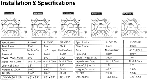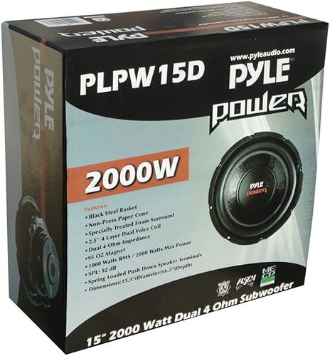 Pyle SUBWOOFER SUB PLPW15D PLPW 15D 38 CM 380 MM 15' DA 1000 WATT RMS E 2000 WATT MAX DOPPIA BOBINA DA 4 + 4 OHM DVC DUAL VOICE COIL PER COFANO BAGAGLIAIO AUTO