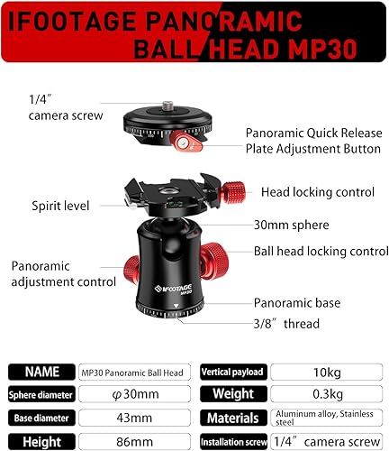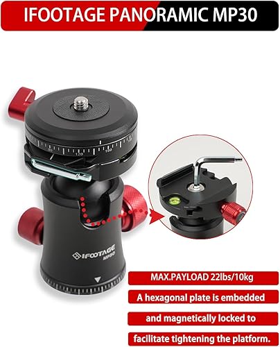 IFOOTAGE Treppiede Testa a Sfera Komodo MP30, Supporto per Treppiede con Testa a Sfera in Alluminio Professionale per Monopiede, DSLR, Videocamera, Carico Massimo 10 kg/22lbs