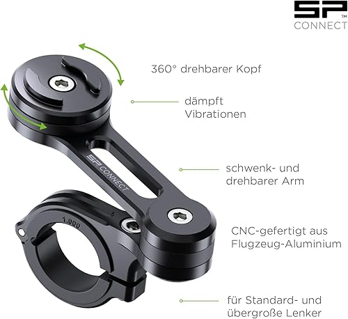 SP Connect Supporto Universale per Cellulare da Motociclette e Motorini - Blocco a Rotazione Brevettato - Forte Presa a Morsetto - Adatto a Manubri Standard e Grandi - Accessori da Motociclismo.