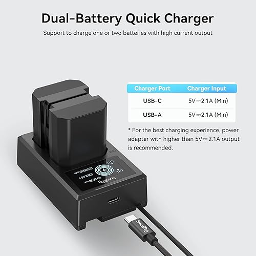 SMALLRIG NP-FZ100 (2 Pcs) Camera Batterie & Schermo LCD, Caricabatterie Doppio da 2040 mAh con Porta USB-C per Sony FX3, FX30, A7 III, A7S III, A7 IV, A7R IV, A7CR, A7CII, A9, A9II, ZV-E1, A6600-3824B