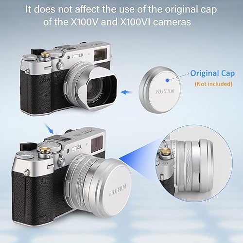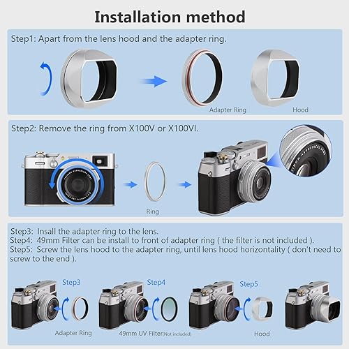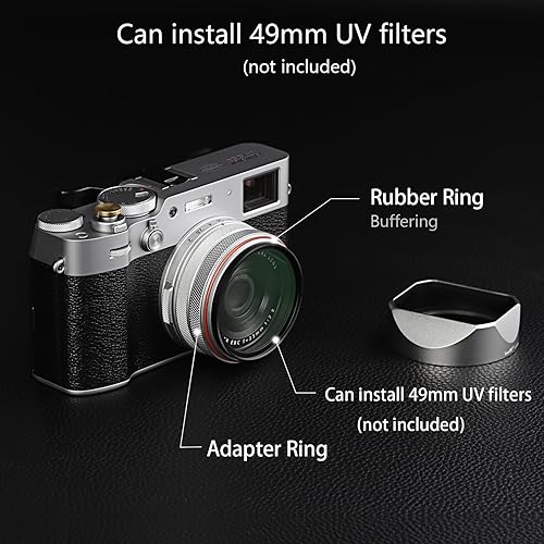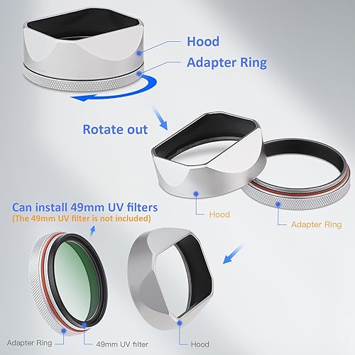 Paraluce quadrato in metallo x100vi Haoge LH-X54W per fotocamera Fujifilm Fuji X100VI argento con anello adattatore filtro UV da 49 mm