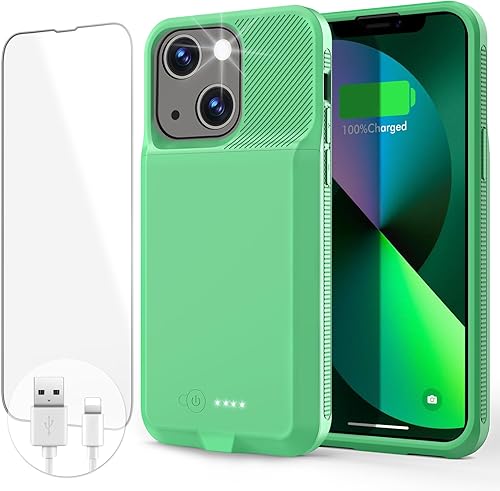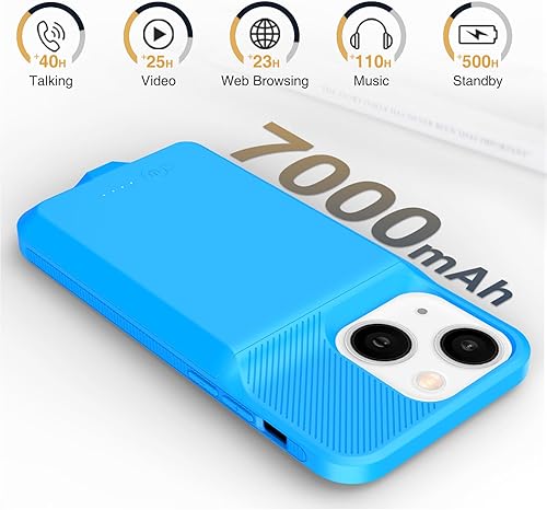 Custodia Con Batteria Ricaricabile Ultra-Sottile 7000mAh Per Iphone 13/13 Pro/14/14 Pro (6,1 Pollici) - Blu