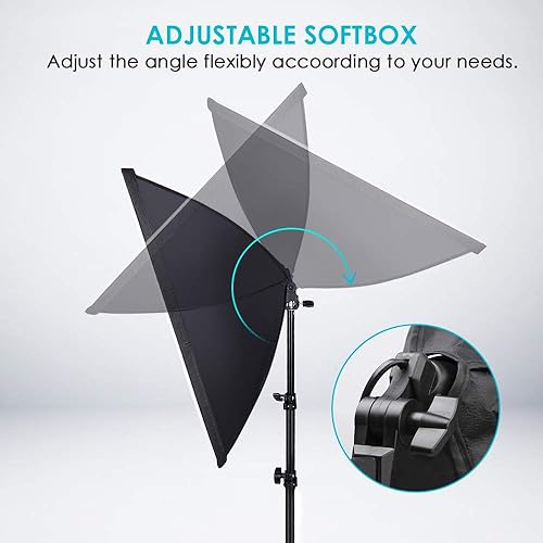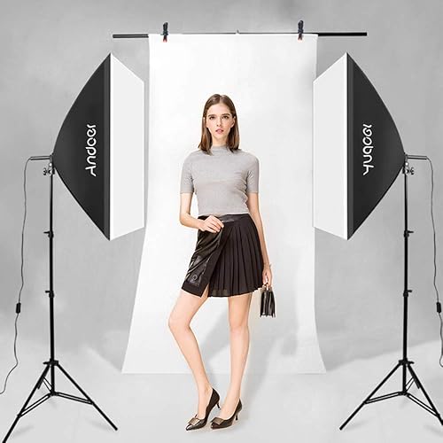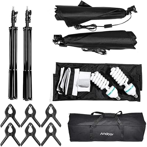 Andoer Softbox Kit Luce Fotografia da Studio Professionale, Softbox da 50 * 70 cm + 150W 5500K Lampadine x 2 + 2m Stativo + 6 clip + Borsa per Trasporto, Illuminazione Fotografica Luce Set (2 PCS)