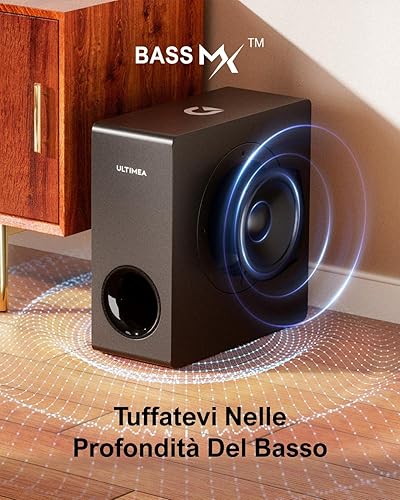 ULTIMEA 4.1ch Barre Audio per TV con Subwoofer, Soundbar Staccabile 2 in 1 per TV, Soundbar Bluetooth 5.3, 3 Modalità di Equalizzazione degli Altoparlanti TV, Bassi Regolabili, Apollo S50