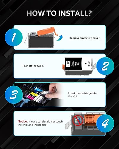 912 XL cartucce d'inchiostro con chip recente compatibile con HP 912XL per HP OfficeJet 8010 8012 8014 8015 8017 8018, OfficeJet Pro 8022 8023 8024 8025 8030, Confezione da 4