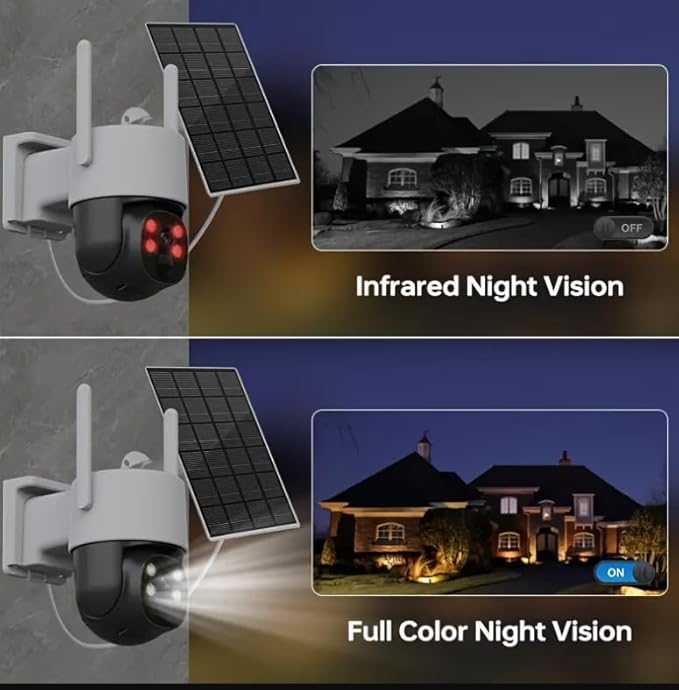 MF artSHOP Telecamera di Sicurezza WiFi da Esterno IP Camera con Pannello Solare, PTZ, Visione Notturna, Audio Bidirezionale, Tracciamento Automatico, Doppia Antenna, ICSEE, SD Card