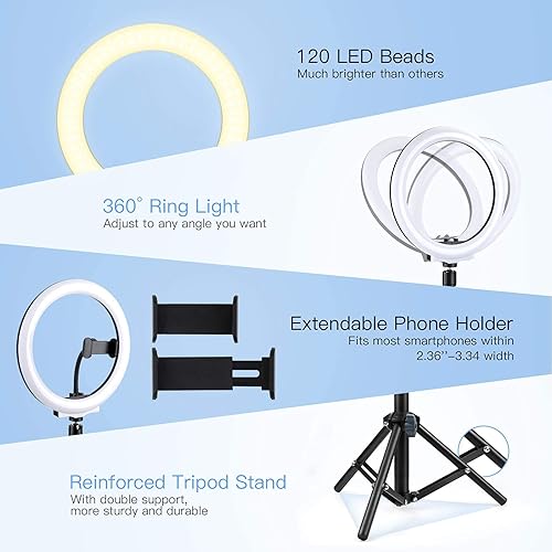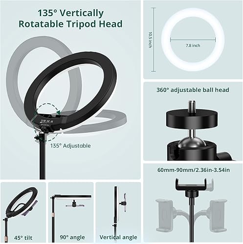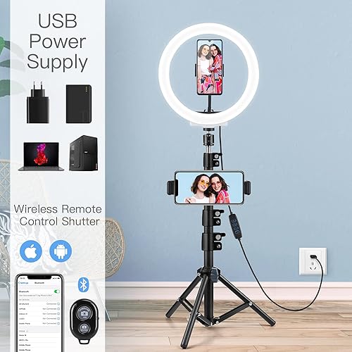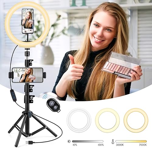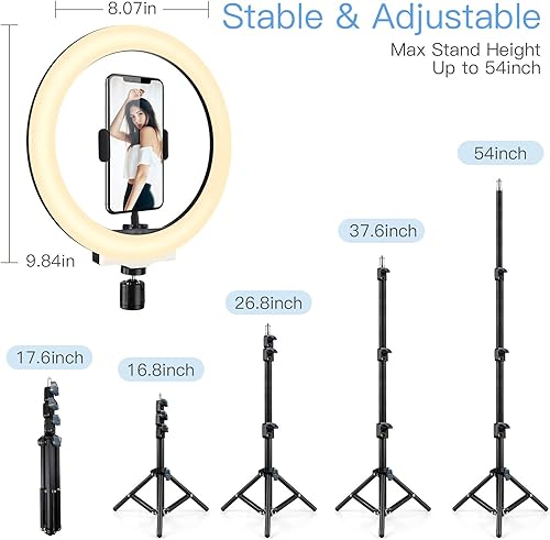 AGPTEK Luce Anello LED 10,2 Pollici Luce per Tik Tok Selfie Ring Light Treppiede 135cm Bluetooth Telecomando Lampada per Fotografica Video Youtube 3 Colori Chiari 10 Livelli di Luminoso Dimmerabile