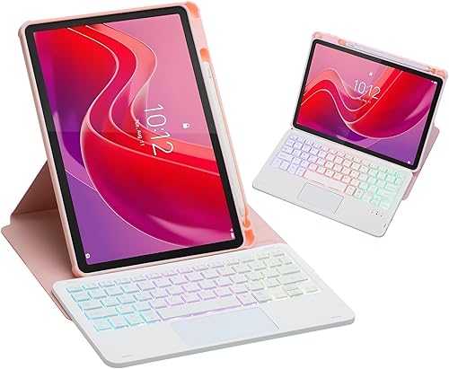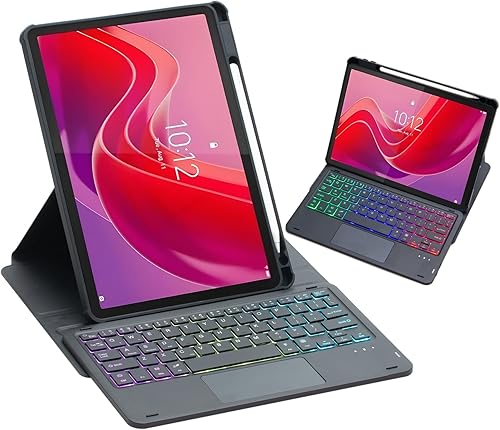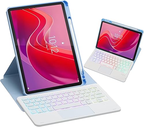 HLTOOP Custodia con Tastiera per Lenovo Tab M11 11 Pollici 2024 (TB330FU/TB330XU), Custodia Girevole A 360°, Tastiera Bluetooth Staccabile con Retroilluminazione A 7 Colori E Touchpad,Blu