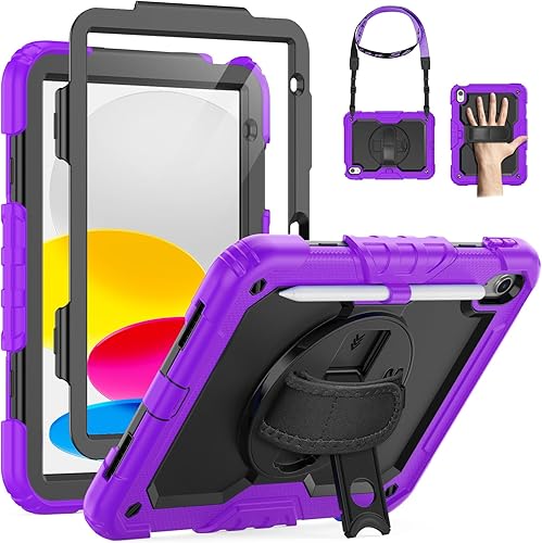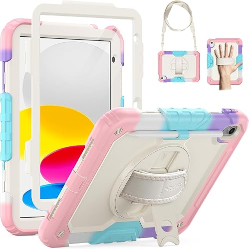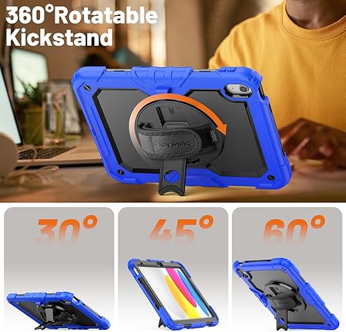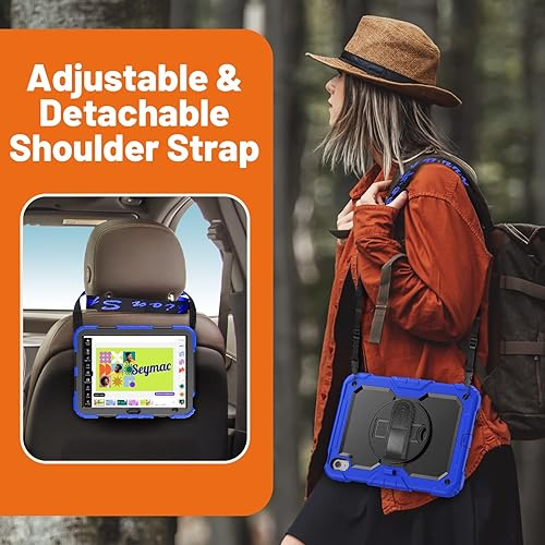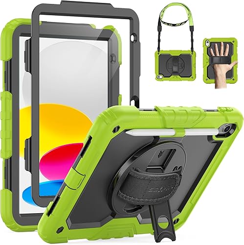SEYMAC Custodia per iPad 11/10 Generazione 2025/2022 (11/10,9 Pollici), Resistente agli urti con Protezione per lo Schermo, Supporto Girevole a 360°/Cinturino da Polso, Portapenne, Verde