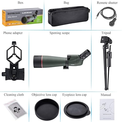 LAKWAR Cannocchiale per Cellulare, 20-60x80AE, Professionale Rivestito FMC, con Supporto Cellulare + Cavo Controllo Otturatore, Adatto per Osservazione Uccelli, Tiro Sportivo e Campeggio