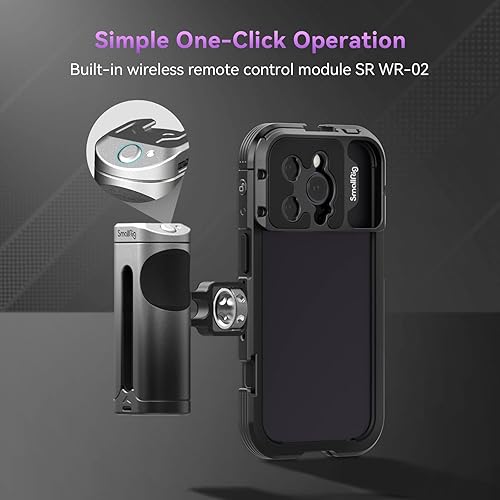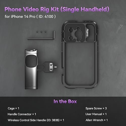 SMALLRIG Kit Video Rig per Smartphone per iPhone 14 Pro con Impugnatura Laterale di Controllo Wireless, Kit Gabbia Video in Alluminio per Filmmaking/Videografia/Live Streaming/Vlog - 4100