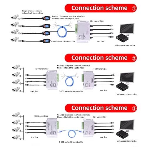Connettori video balun, trasmettitore coassiale HD a coppie intrecciate a 4 canali per cavo BNC maschio a Cat5/5E/6 RJ45 UTP
