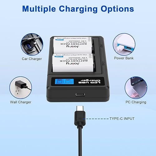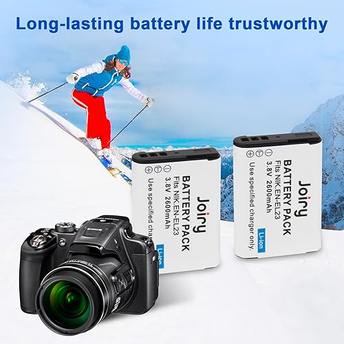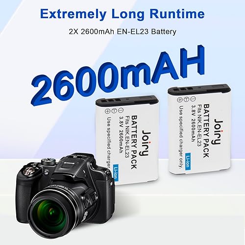 Joiry EN-EL23 - Batteria di ricambio (2 pezzi) e caricatore LCD Dual per Nikon EN-EL23 e Nikon Coolpix B700, P600, P610, P610s, P900, P900s, S810c