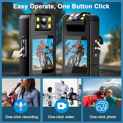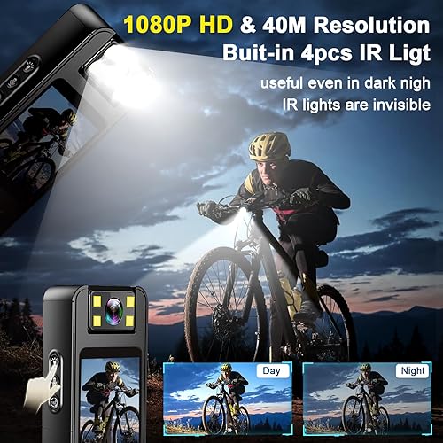 Telecamera per corpo WLAN Bodycam con scheda TF da 128 GB, 1080P FHD Mini fotocamera con obiettivo girevole a 180°, registrazione audio e video per sport all'aria aperta, polizia