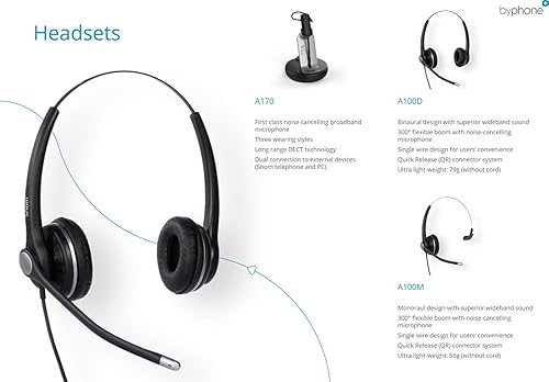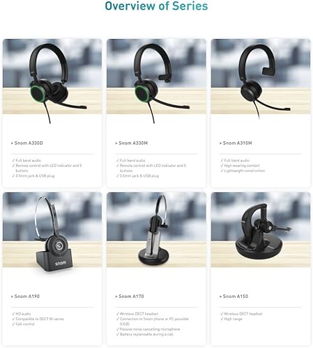 A100D Binaurale auricolare per tutti i telefoni da scrivania Snom, Passivo cancellazione di rumore Microfono, Superior Wideband Audio Grazie Per Optimized Speaker sintonia); Nero; 00004342