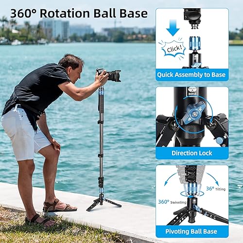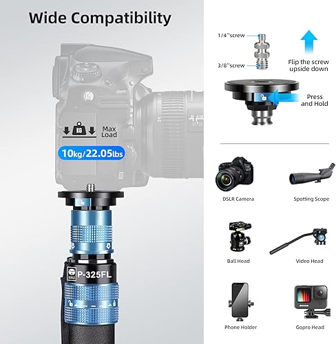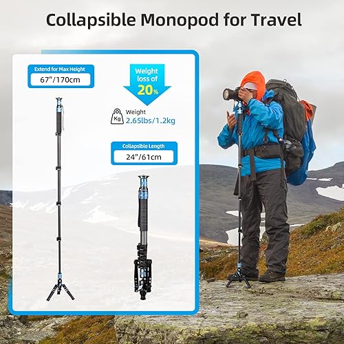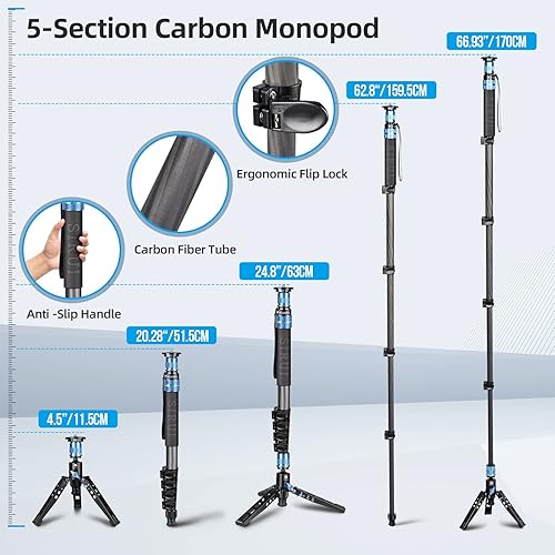 SIRUI P-325FL Monopiede in Fibra di Carbonio da 170cm con Piedini per Fotografia Reflex, Portatile Monopiede Fotografico Professionale a 5 Sezioni per Fotocamera, Videocamera, Carico Massimo 10kg