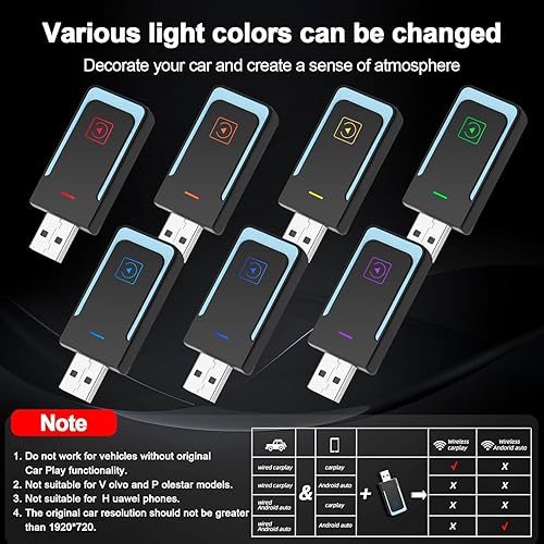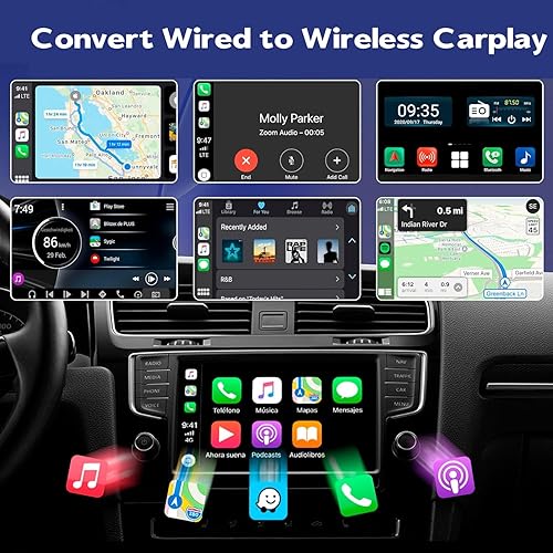Adattatore Carplay Wireless per i-phone, Mini Car Play wireless Dongle Converte Carplay da cablato in Wireless,Typ-C/USB Plug & Play, Compatibile con iOS 12+