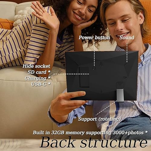 AILRINNI Cornice Digitale WiFi 10.1 Pollici - HD IPS Touch Screen Cloud Cornice Foto Digitale, Auto-rotazione, Condividi Foto con l'App Frameo (Modello)