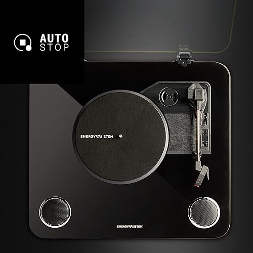 Energy Sistem Blackspin - Giradischi da 10 W, in vinile, RCA, porta USB, Bluetooth, Bluetooth out, bambù) Nero