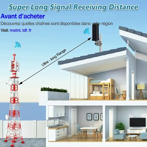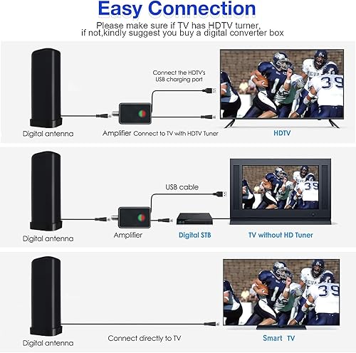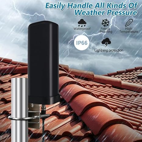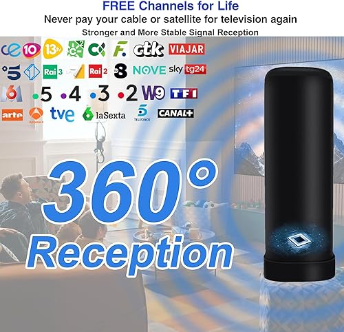 Antenna TV Esterni Interni, IP66 Antenna DVB-T DVB-T2 Ricezione Del Segnale a 360 Gradi con Amplificatore Segnale, Cavo Coassiale da 13m e Protetto Dai Fulmini per FM, VHF, UHF 1080P 4K VHF DTMB