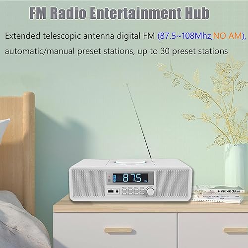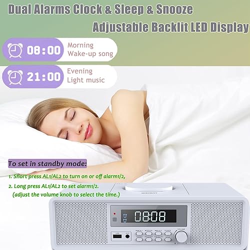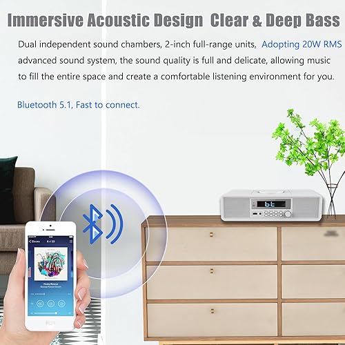 Radio compatta con lettore CD, sistema audio RMS nitido da 20 W, lettore CD radio FM con Bluetooth, USB, MP3, AUX, doppia sveglia digitale, riproduzione CD-R/CD-RW/MP3/WMA