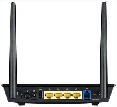 Asus DSL-N14U-B1 Modem Router ADSL2+, Wireless N300 Mbps, 4 Porte LAN Fast Ethernet RJ45, 1 Porta USB, 2 Antenne Esterne Hi-gain 5 dBi, Nero/Antracite