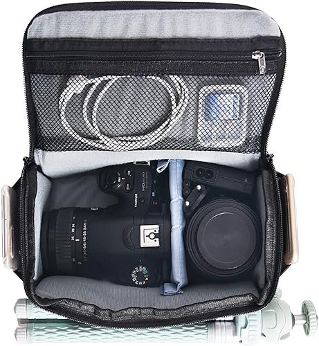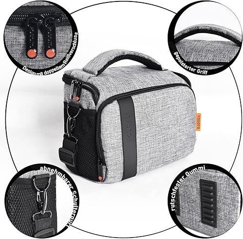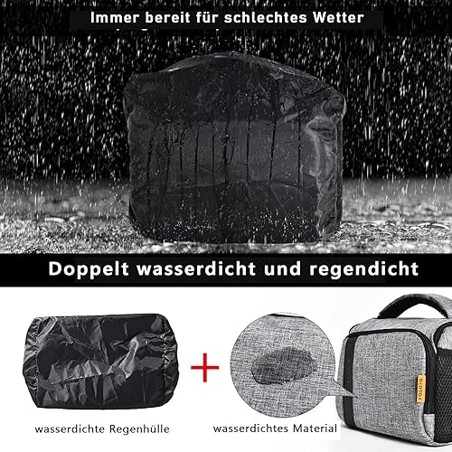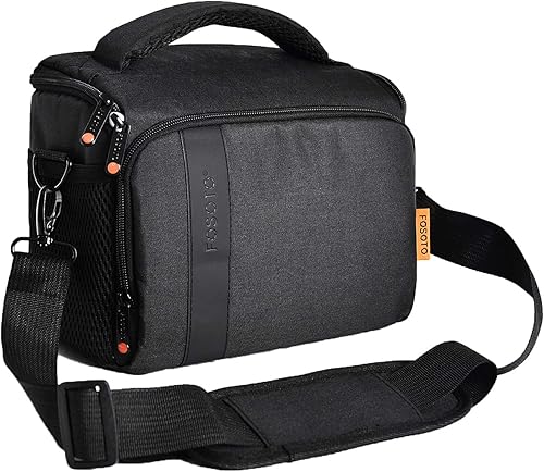 FOSOTO Borsa a tracolla impermeabile e antiurto per fotocamera con custodia antipioggia (nero), compatibile con Canon EOS 4000D 2000D 77D 60D 80D 6D MarkII M50 M6