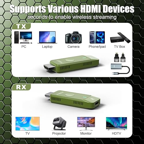 Trasmettitore e Ricevitore HDMI Wireless - Kit Estensore Portatile Plug & Play 2.4G/5G per Streaming di Video e Audio su Monitor da Laptop/PC/TV Box/Proiettore