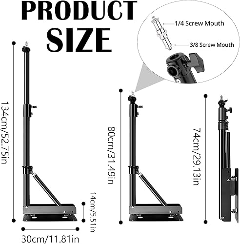 Supporti da Parete Triangolari, Braccio Asta 180° Treppiede Montaggio a Parete Rotazione 74-134CM Lunghezza Regolabile Supporto per Luce Fotocamera Supporto a Parete per Fotografia Softbox