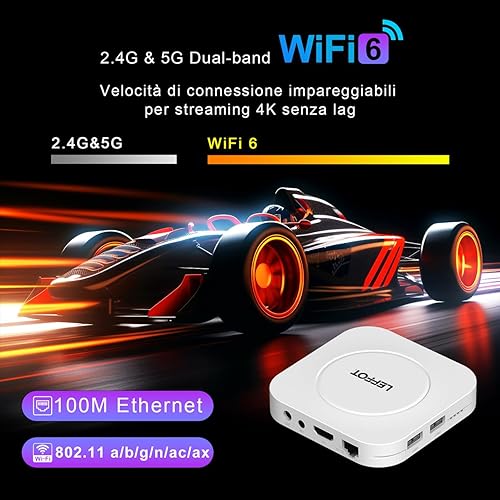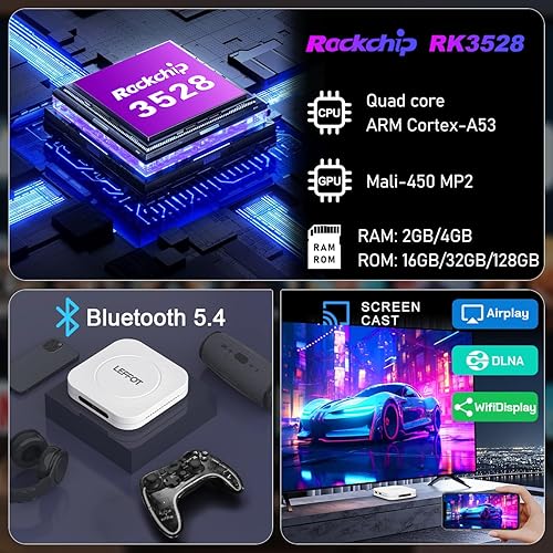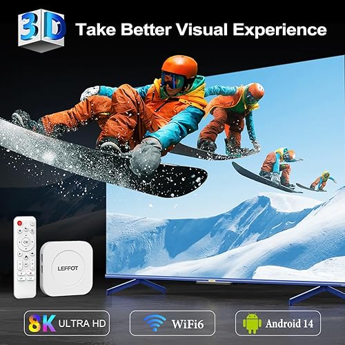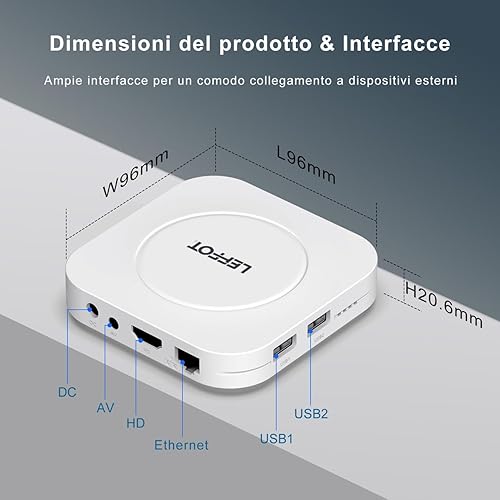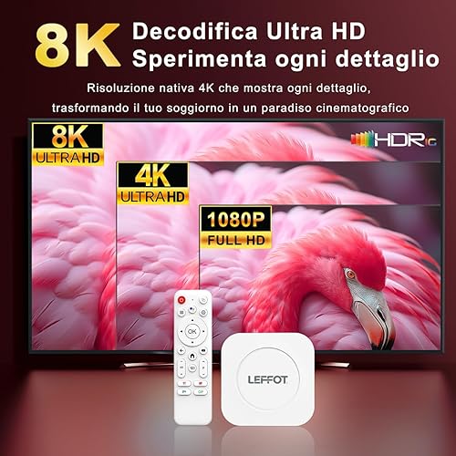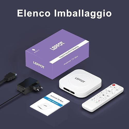 LEFFOT Android TV Box 2025, M1 Plus 4K Ultra HD Android 14 Box, 4GB RAM + 128GB ROM, Smart TV Box con supporto Google Assistant Voice Remote, HDR10, 2.4G & 5G WiFi 6, BT 5.4, 3D, RK3528 Quad-Core A53