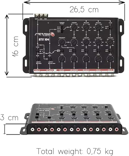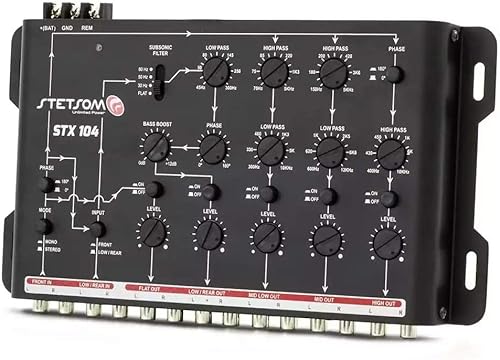 KIT SET PER STETSON STX104 1 crossover elettronico a 5 vie, equalizzatore, 4 ingressi, 5 uscite, con bass boost e subsonic filter, per auto, 1 pezzo