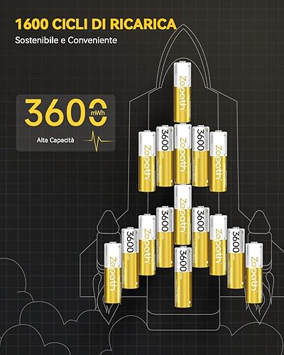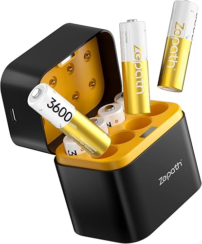 BATZONE 8PCS 1,5V AA Lithium Batterie Ricaricabili con Caricabatterie 8 Slot, 3600mWh Dobbia A Batterie Ricaricabili con 2000+Tech, Ricarica & stoccaggio in Uno