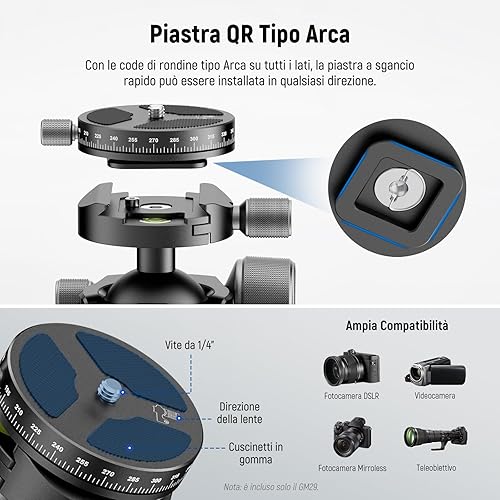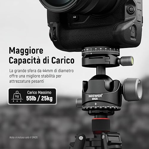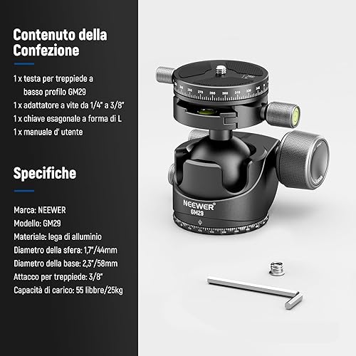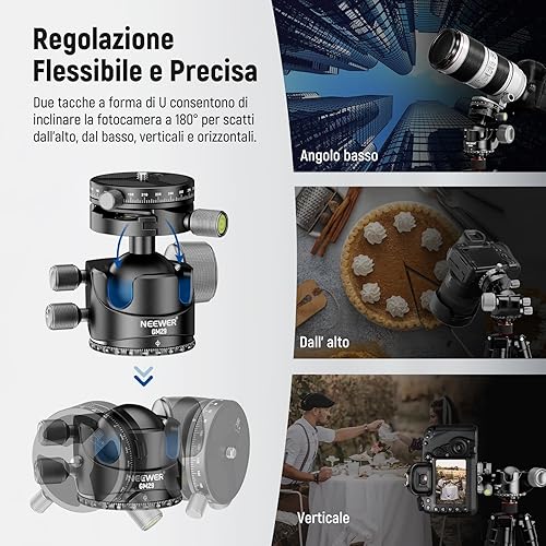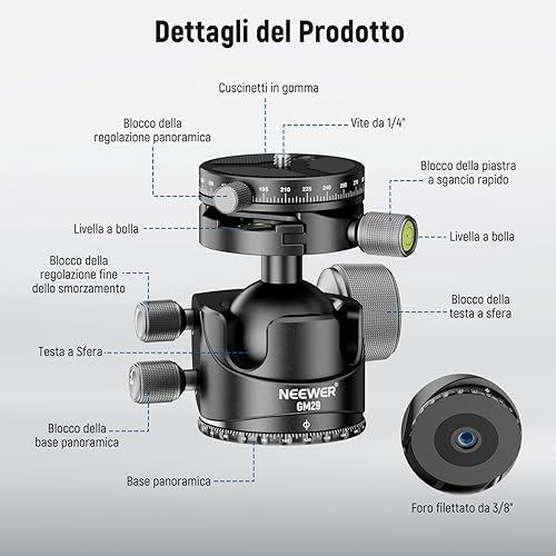 NEEWER Testa per Treppiede a Basso Profilo,Testa Sferica con Baricentro Basso con Smorzamento, Doppia Struttura Panoramica a 360°su Piastra Arca e Base per Treppiede Videocamera, Carico Max 25kg, GM29