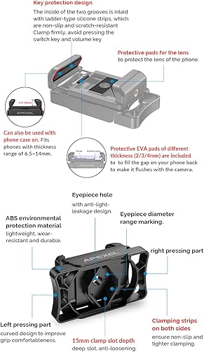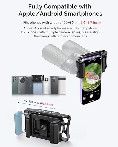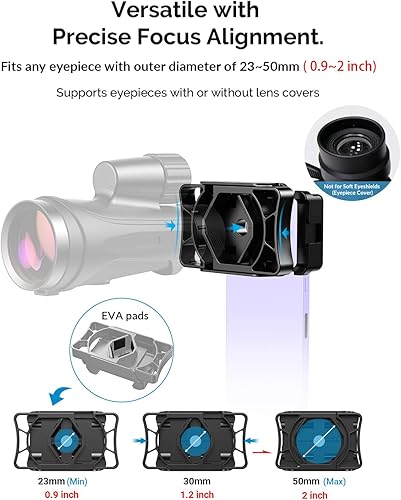 Il supporto per adattatore telefonico si adatta a binocoli, microscopio, cannocchiale e monoculare, dispositivi ottici, adattatore telescopico compatibile per tutti i telefoni.