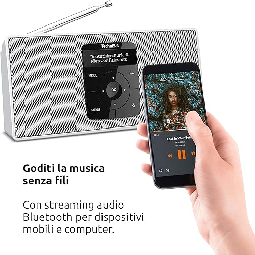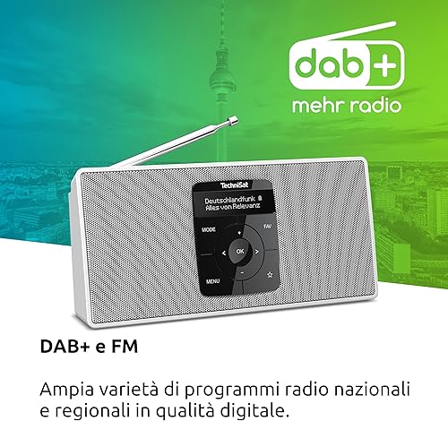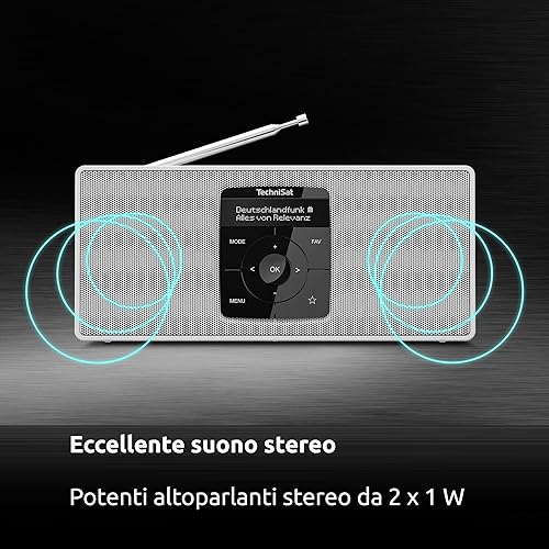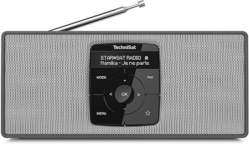 TechniSat DIGITRADIO 2 S - Radio stereo DAB portatile con batteria ricaricabile (DAB+, FM, Streaming audio Bluetooth, Display OLED, Ingresso per cuffie, Stereo 2 Watt RMS), Nero/Argento