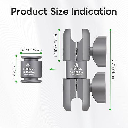 FANAUE Braccio girevole a doppio giunto, in Alluminio, Compatibile con Adattatori RAM Mounts di Dimensione B/Sfera da 1 Pollice. Lunghezza del Braccio di 94 mm (DA-100pro)