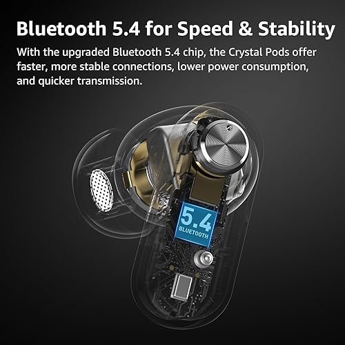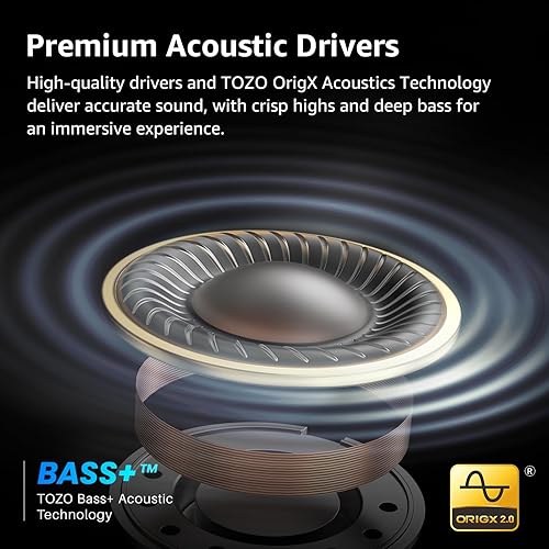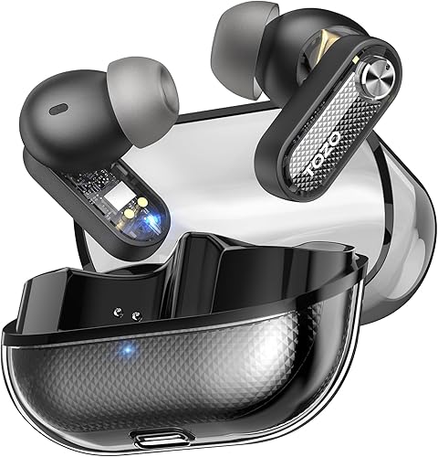 TOZO Crystal Pods Cuffie Bluetooth 5.4 con Ibrido ANC Chiamata IA ENC ORIGX 2.0 Acustica EQ Regolazione 35 Ore Riproduzione Gioco Modalità Ricarica Rapido USB Tipo C IPX5 Nero