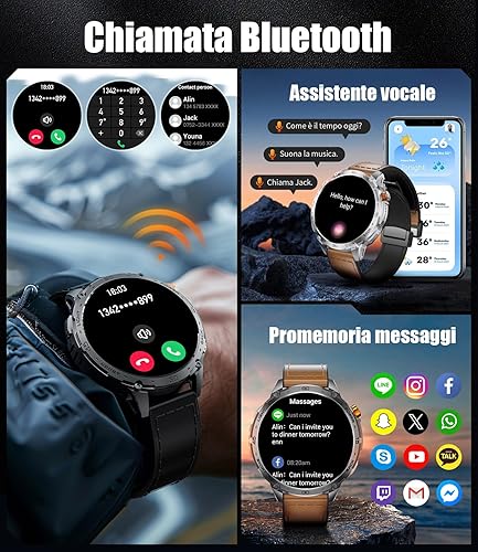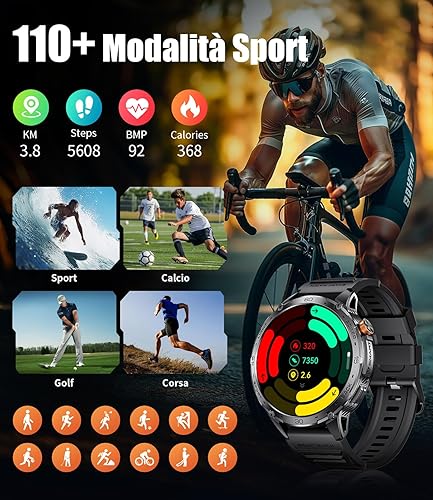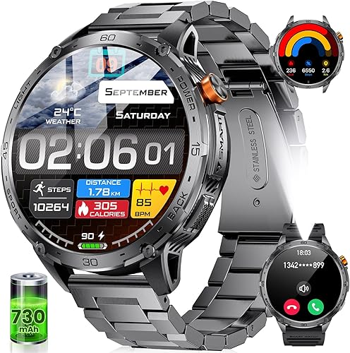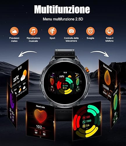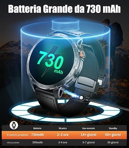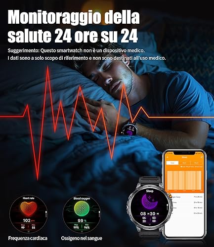 Smartwatch Uomo Militare,1,75'' AMOLED Grande Schermo/Torcia LED/730 mAh Batteria, Orologio Intelligente con SpO2 /Sonno/Cardiofrequenzimetro, 100+ Modalità Sportive, 5ATM Impermeabile per Android IOS