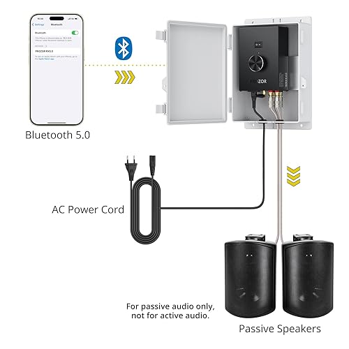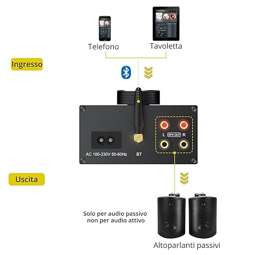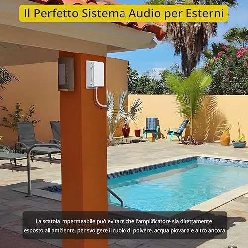 Bluetooth Altoparlanti da Esterno Peak Power 200W+200W Amplificatore di Potenza Bluetooth 5.0 per Altoparlanti da Esterno con Scatola di Plastica Impermeabile Bluetooth Altoparlanti da Parete